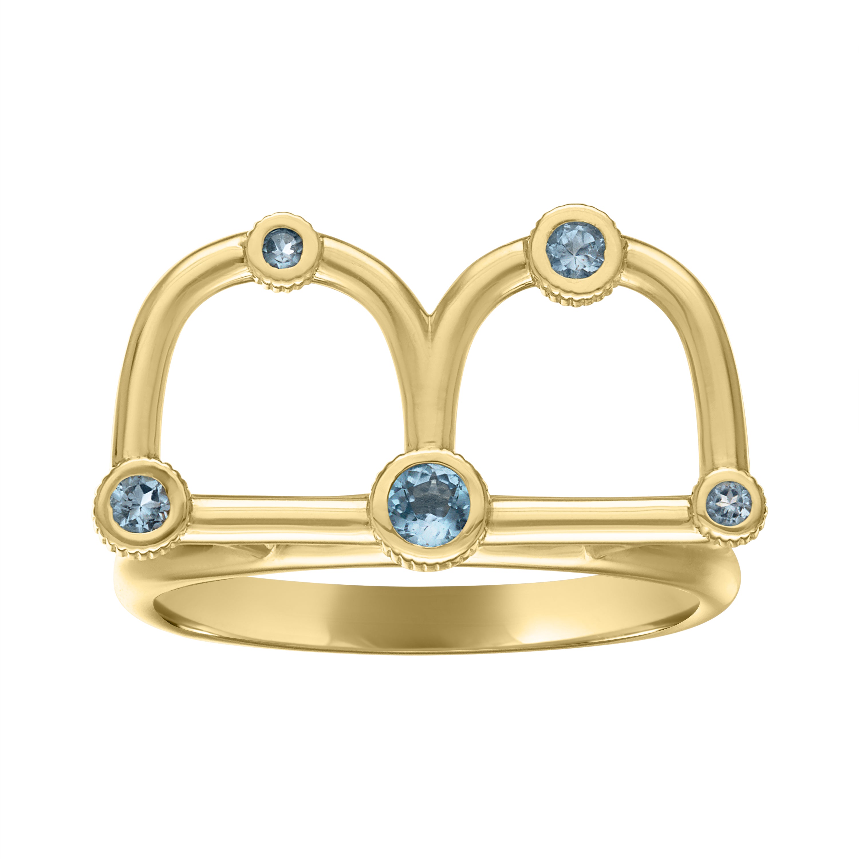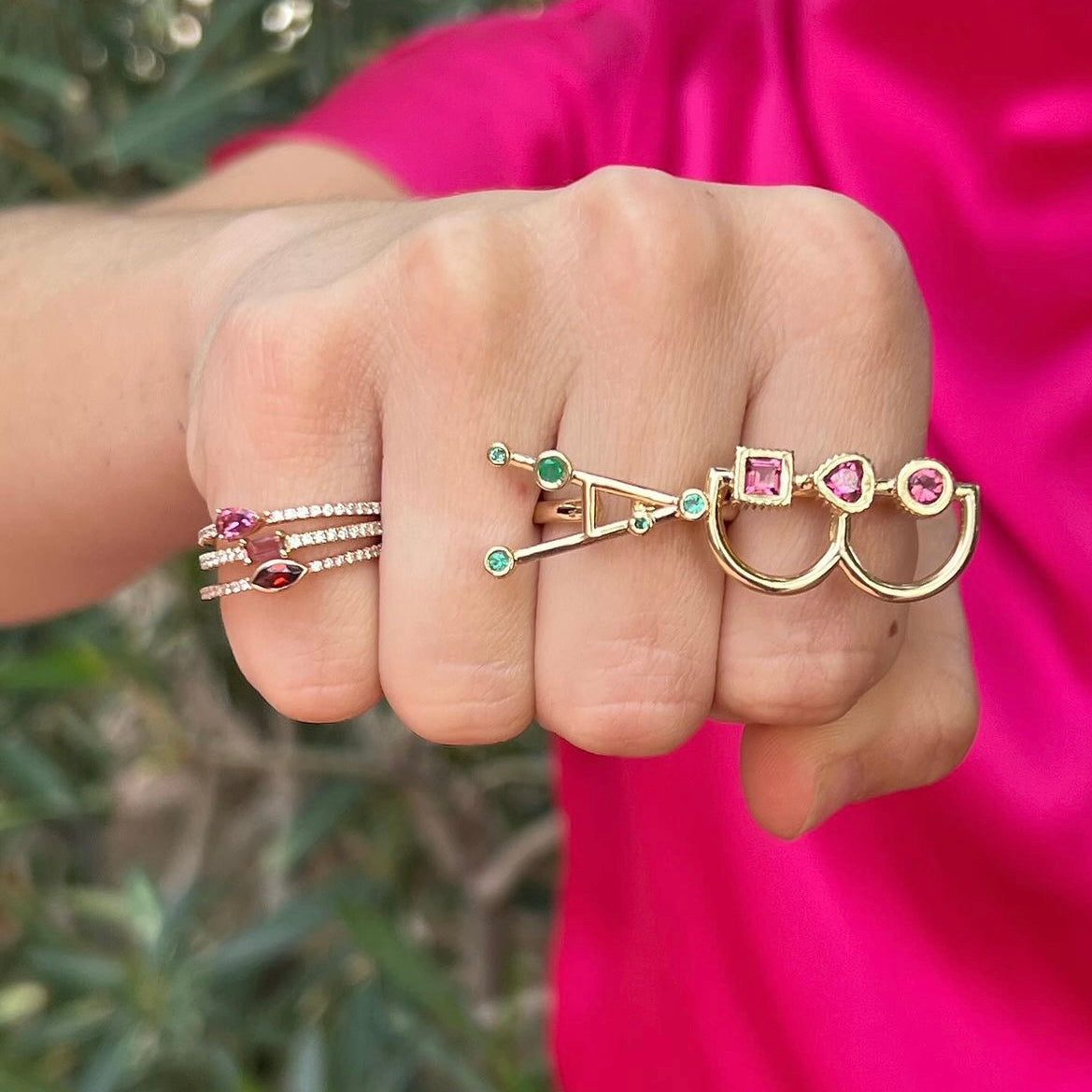 Take your ring game to the next level and personalize your very own oversized initial ring with five mismatched bezel set round gemstones.