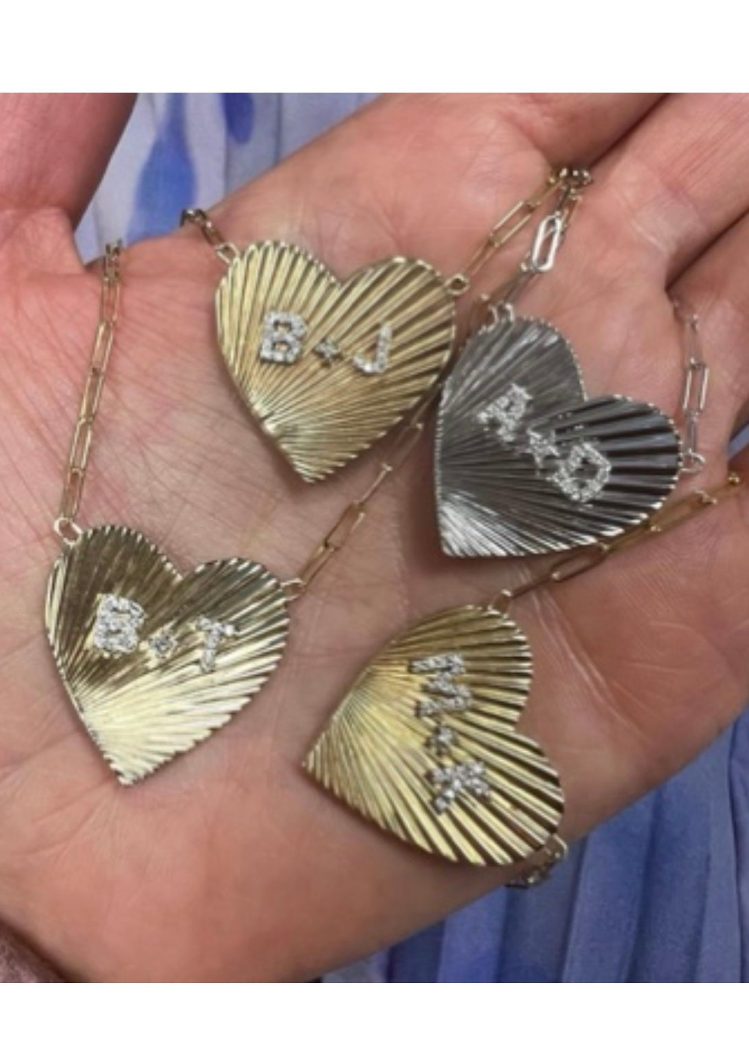 Show them how much you love them with this best-selling, "charming" gift. The heart pendant features our signature fluting, with the option to include up to four initials or a name or word with up to four letters. The letters are dazzling in diamond; a perfect addition to your jewelry collection. This piece is meant to be worn everyday, close to your heart, with the combination of letters that represents something special for you. The Fiona Love Pendant Necklace is a perfect gift to symbolize the many special loved ones in your life.