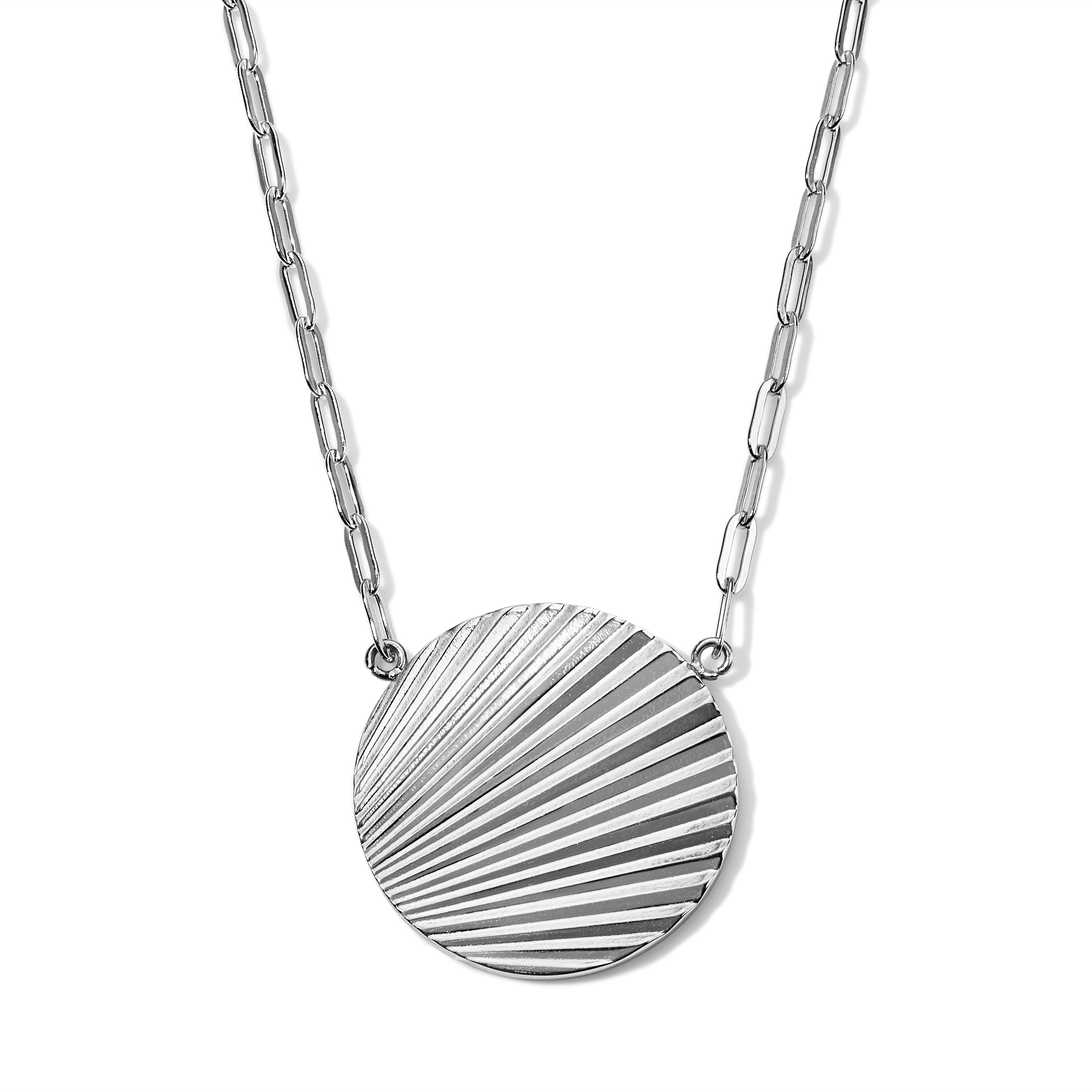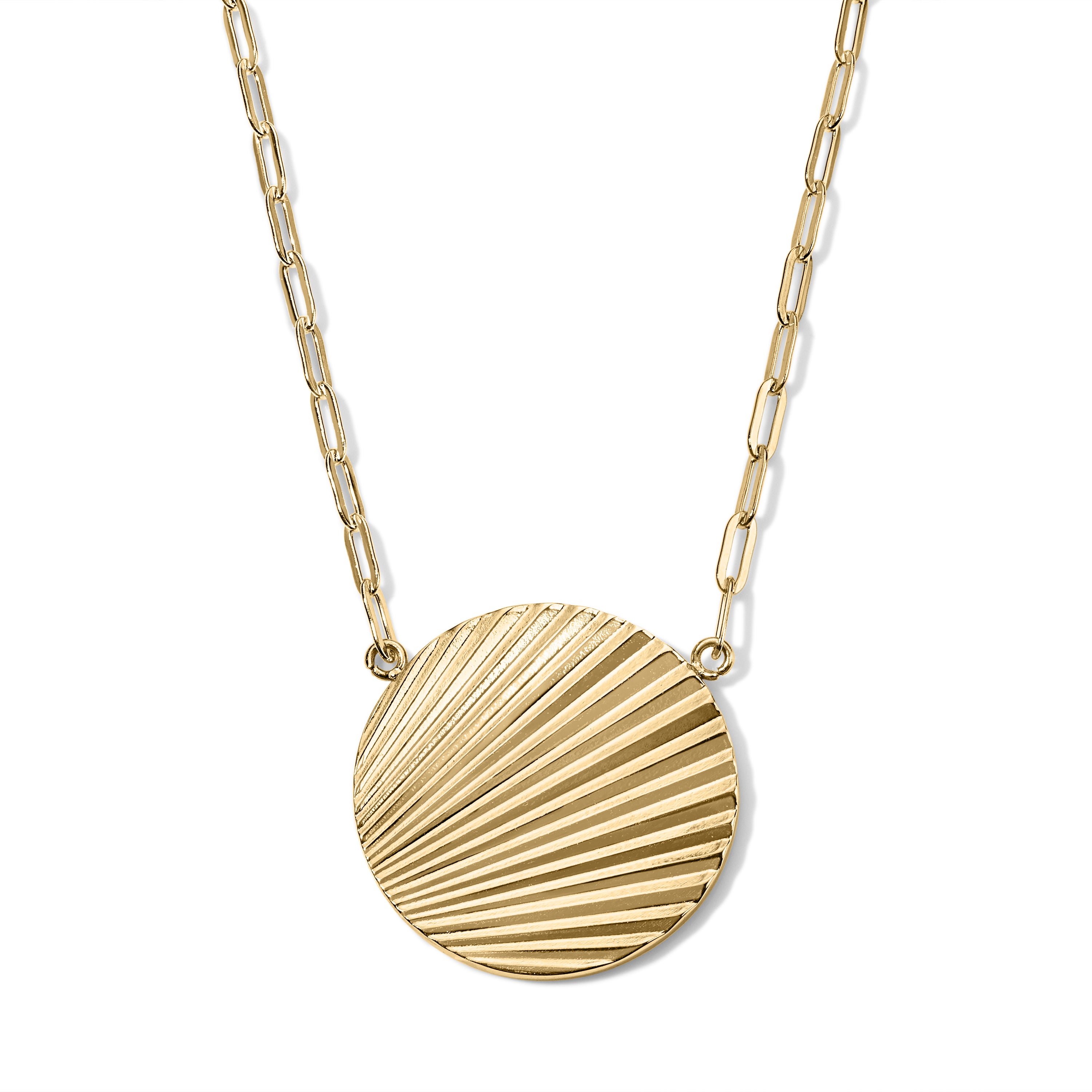 Bring your own sunshine, everywhere you go! Inspired by the sun and designed for everyday brilliance, Our Fluted Sun Necklace is crafted in durable, non-tarnish stainless steel and finished in your choice of silver or yellow gold tone. The bold fluted lines catch the light like rays, giving effortless energy to any outfit.