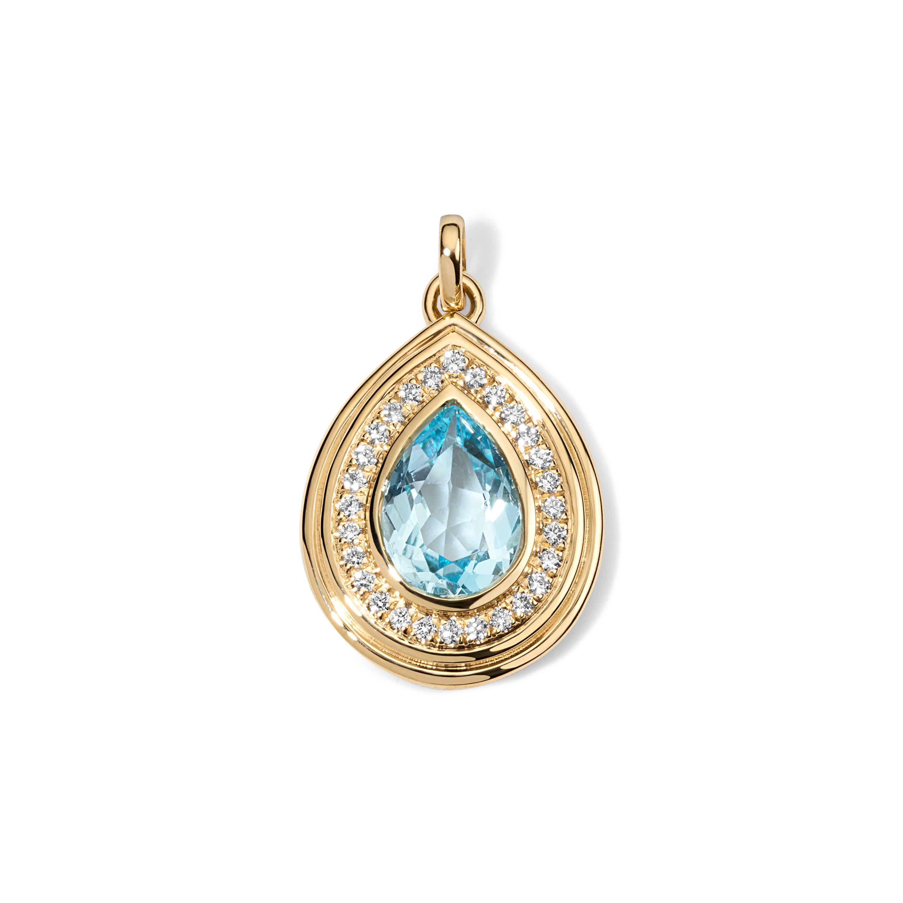 A classic teardrop, amplified. The MAC Halo Pear Pendant sets a luminous pear-shaped gemstone within a diamond halo and our signature MAC double-bezel setting, creating a glowing effect that floats beautifully on your favorite chain.
