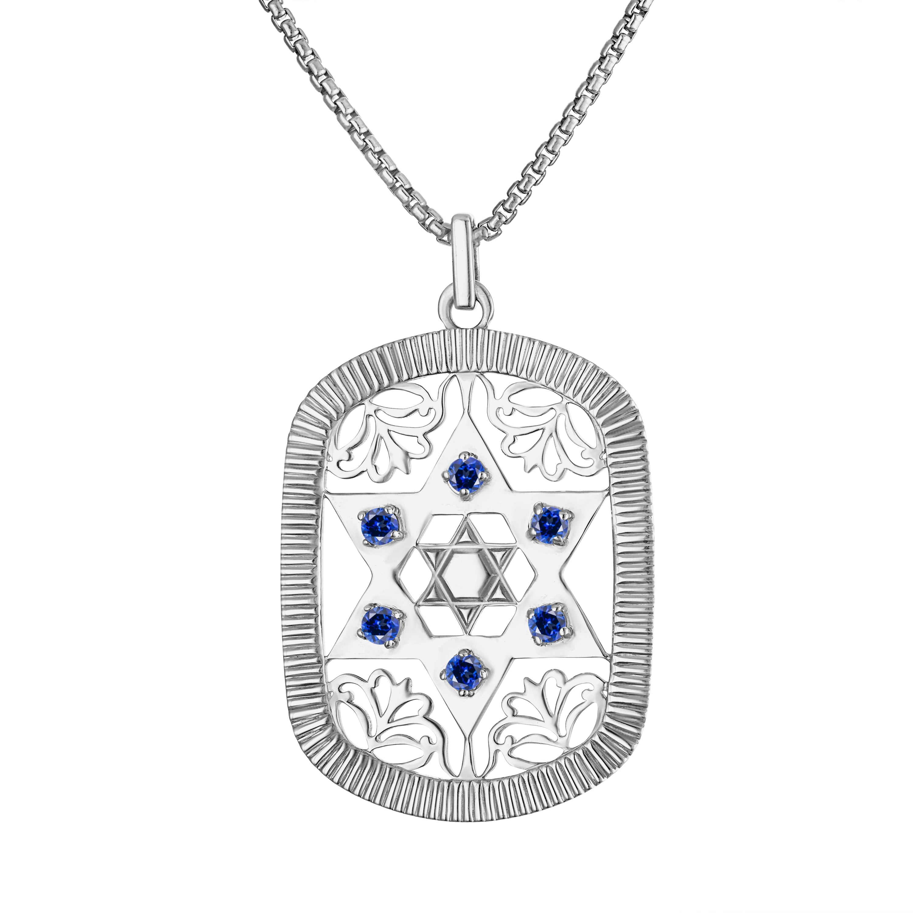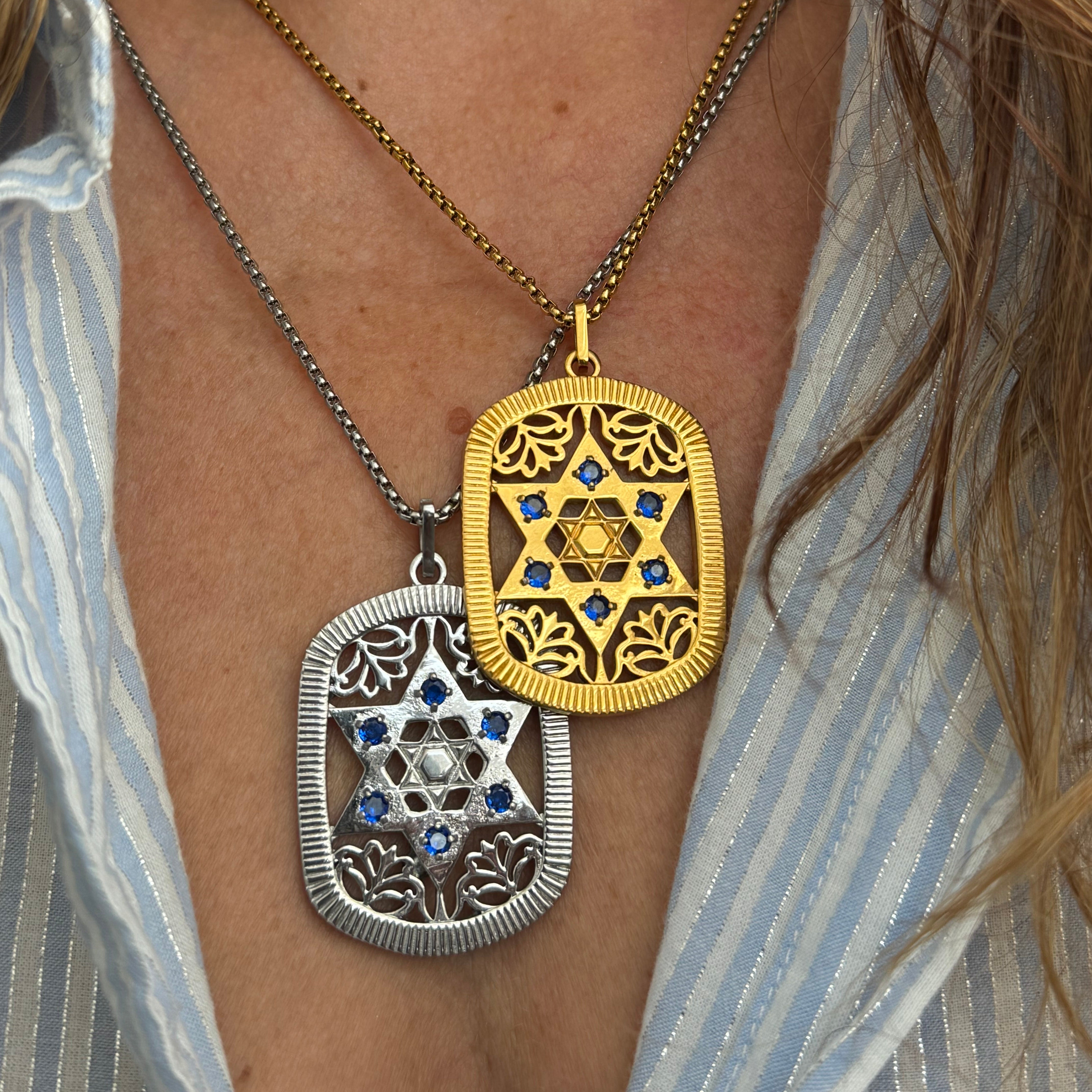 Large Jaime Star of David Dog Tag Necklace (Sapphire Crystals)