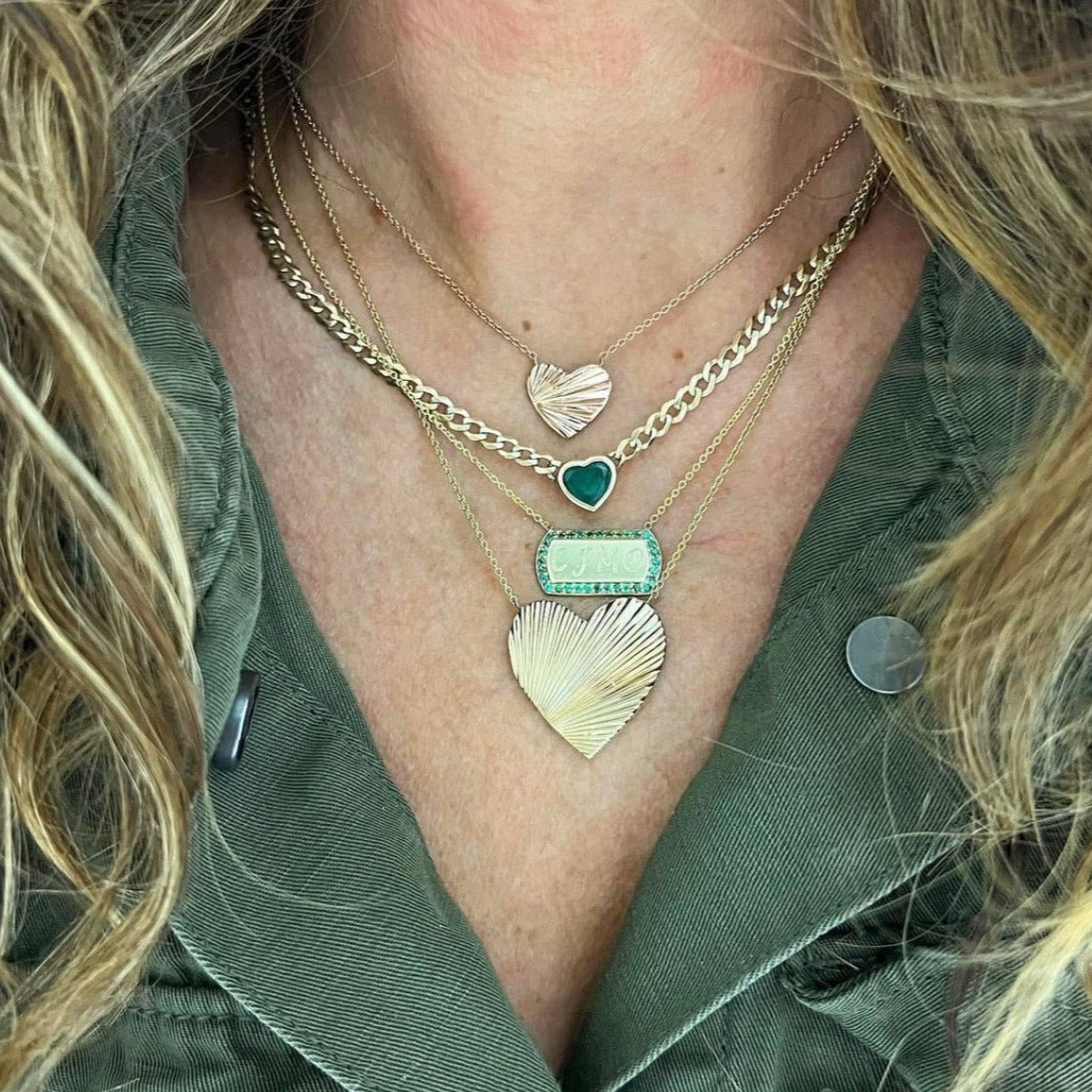 Add some texture to your neck mess with the Lexi Necklace. This large fluted heart necklace is perfect for the heart lover who wants to add a some flair to her accessories.