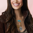 Tradition meets modern design. This silver-toned demi-fine Chai pendant features a turquoise enamel inlay that adds a vibrant pop of color to the symbol of life. It comes on a matching silver-toned paperclip chain. Perfect for layering with other pieces in our Hannah Collection.