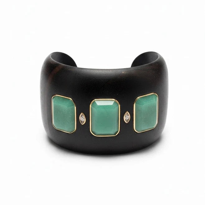 Milestones by AB for My Story: Wide Chrysoprase & Diamond Gemmy Wood Cuff Bracelet