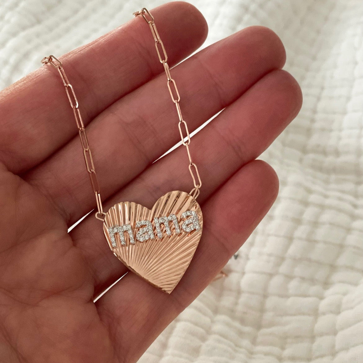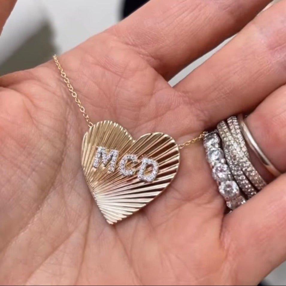 Show them how much you love them with this best-selling, "charming" gift. The heart pendant features our signature fluting, with the option to include up to four initials or a name or word with up to four letters. The letters are dazzling in diamond; a perfect addition to your jewelry collection. This piece is meant to be worn everyday, close to your heart, with the combination of letters that represents something special for you. The Fiona Love Pendant Necklace is a perfect gift to symbolize the many special loved ones in your life.