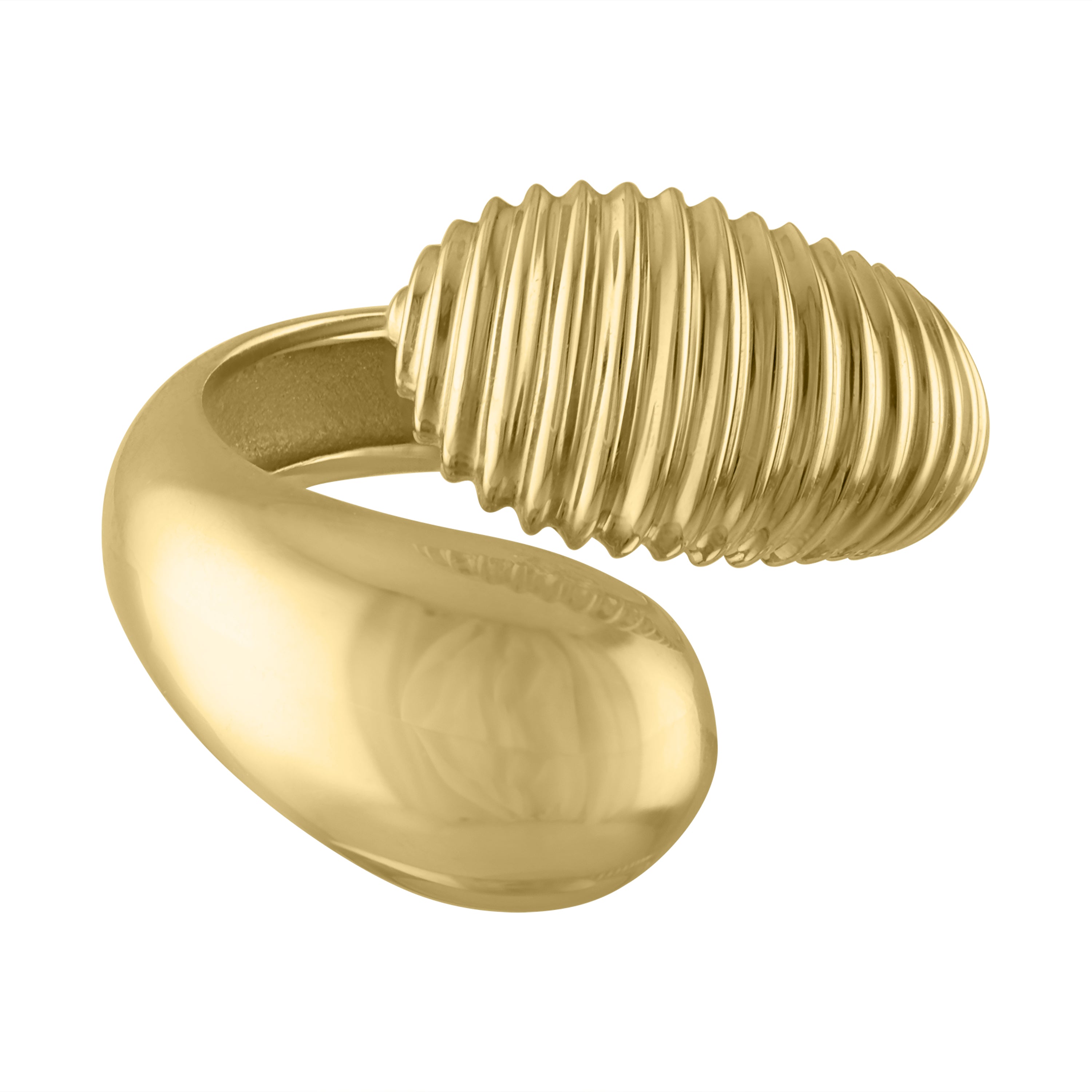 This solid gold ring is a statement piece that brings the best attention to your hands. The asymmetrical fluted and smooth halves to this ring wrap and hug your finger elegantly. Wear this on its own, or stack it with other gorgeous rings from the Fiona Collection!
