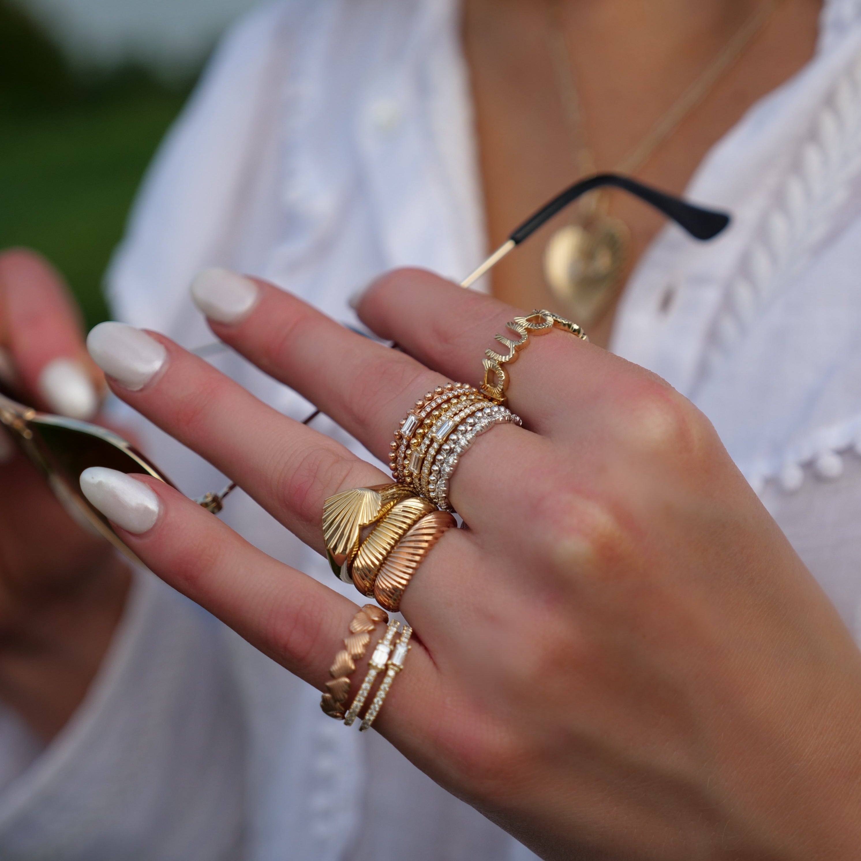 A bubbly twist on a classic beauty. The Bailey Thin Beaded Band is a beautiful bauble that adds a touch of bubbly elegance to any ensemble. Its timeless design features delicate, evenly spaced beads, making it a versatile piece that stands out on its own or complements other rings in a stack. Available in 14k yellow, rose, or white gold, this band is a must-have for those who appreciate understated sophistication with a playful flair.