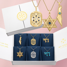 Wear Your Story. Share Your Pride. This Hanukkah, celebrate tradition with meaning and style. Our Limited Edition Hanukkah Gift Box brings together six iconic demi-fine Judaica pendants and four chains, all beautifully presented in a keepsake box.