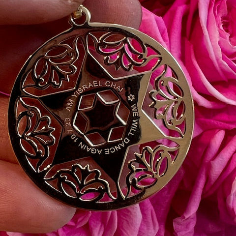 Engraved on the back are the words “Am Yisrael Chai. We Will Dance Again. 10.7.23.” This piece honors both the past and the present—an enduring reminder of Jewish resilience, spirit and beauty. With its meaningful details and timeless craftsmanship, the Hannah Star of David Pendant is more than jewelry—it’s an heirloom in the making, ready to be passed from generation to generation.