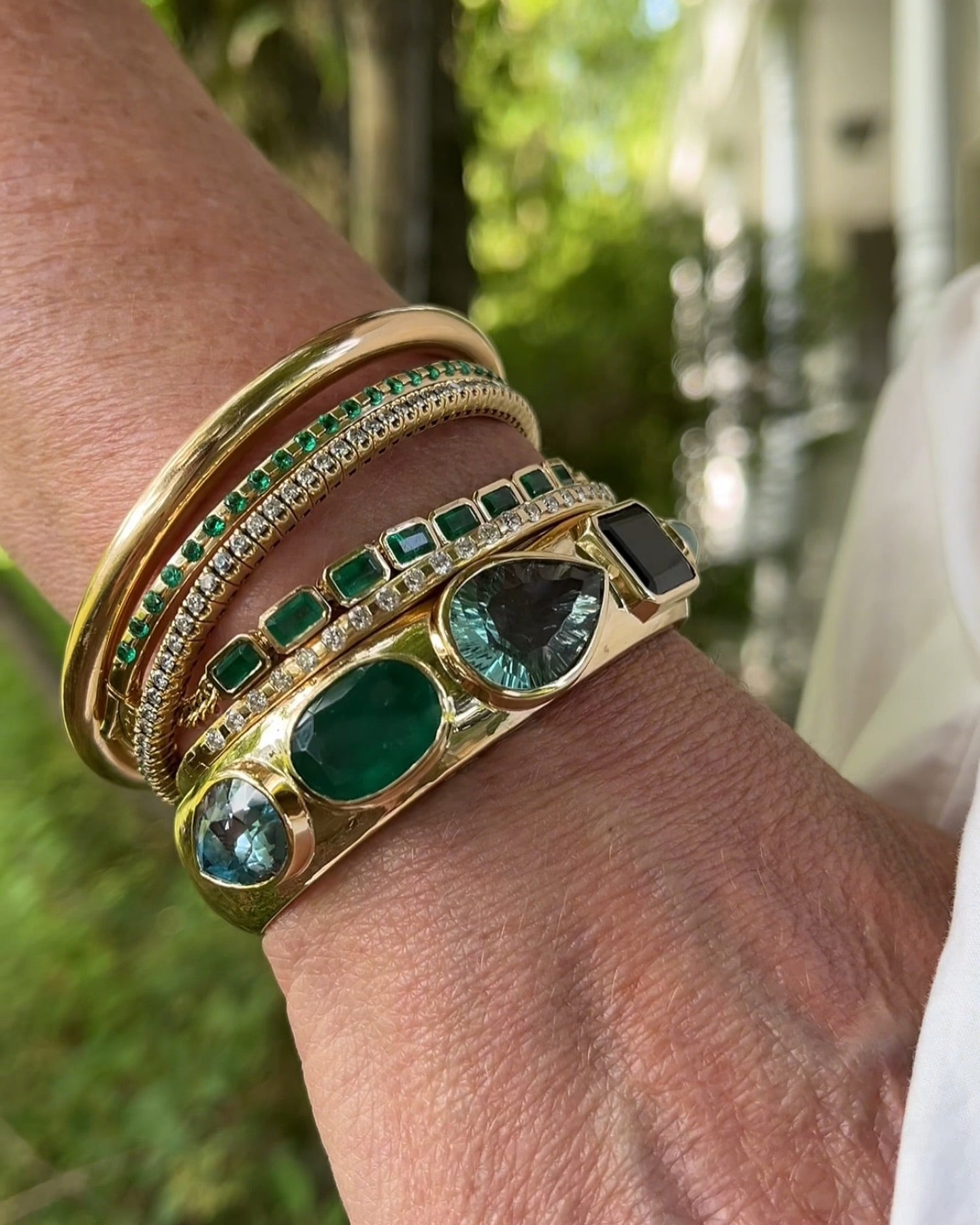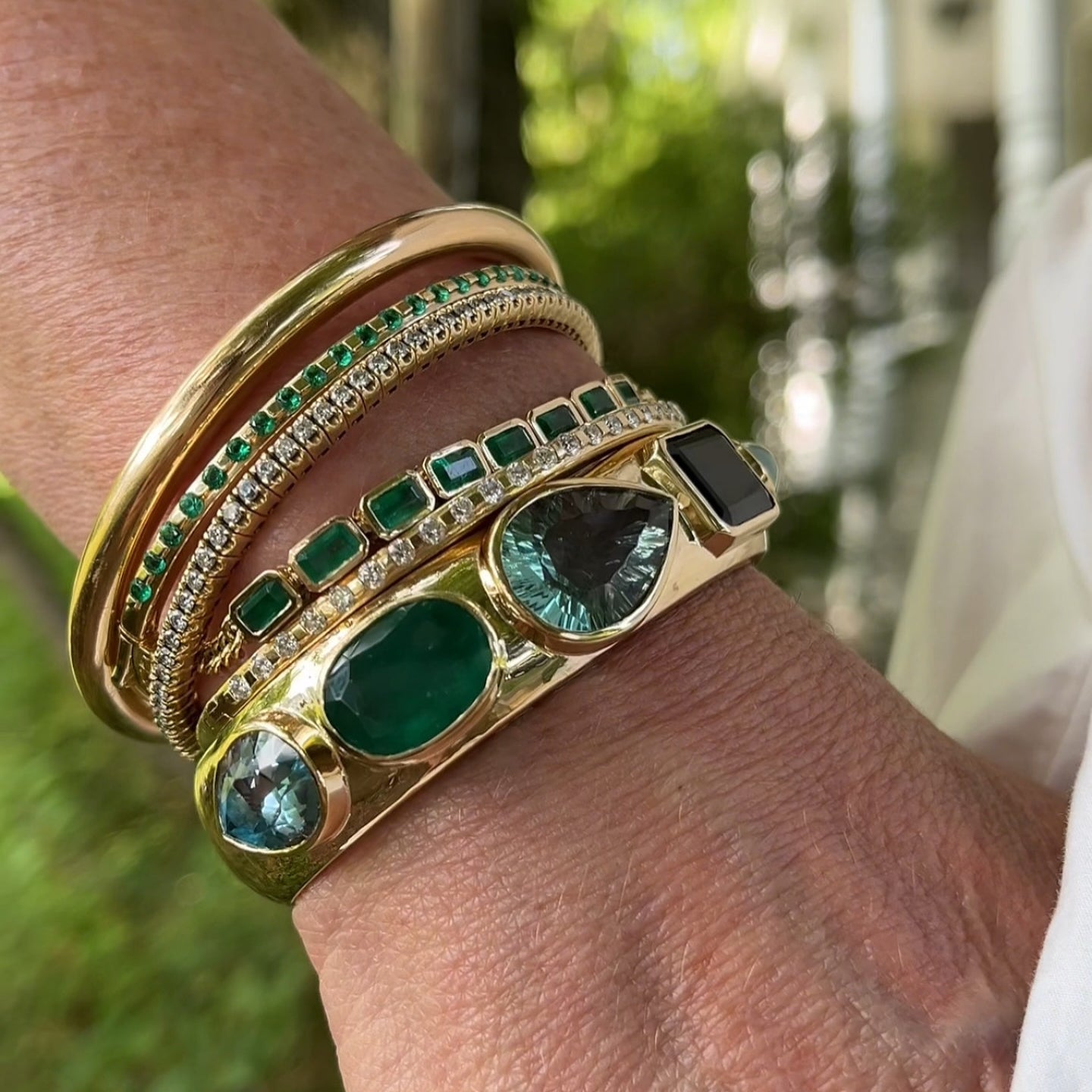 A one-of-a-kind Gemmy Cuff begins at $9,000 and may vary depending on size and selection of gemstones, as well as any other personalized details you would like to include. All Gemmy Cuffs are Final Sale.