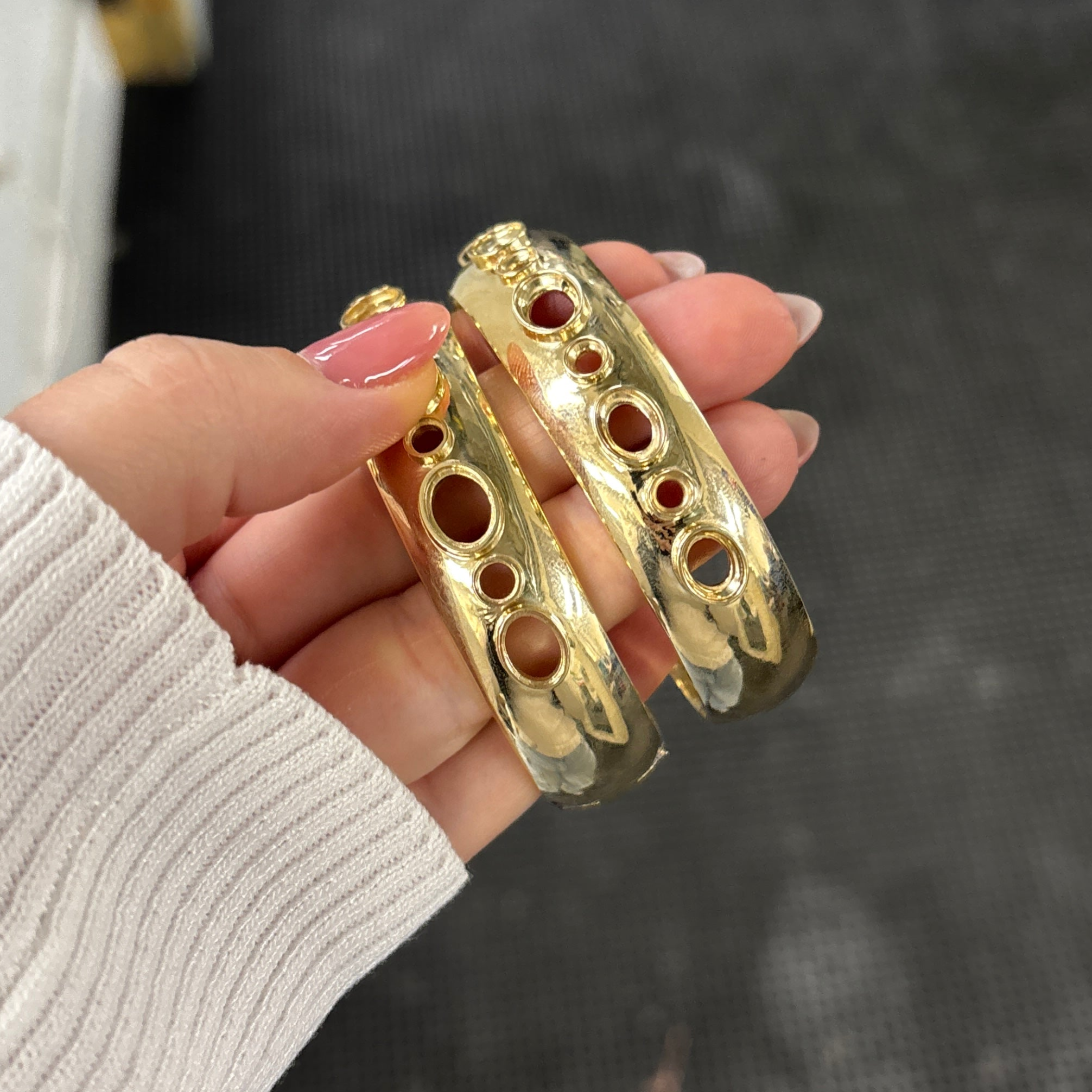 Each cuff is custom-engineered to fit your wrist snugly, with a hinged opening for easy wear. Because it is handcrafted to your specific size, it is not resizable after completion, so accurate wrist measurement is essential.