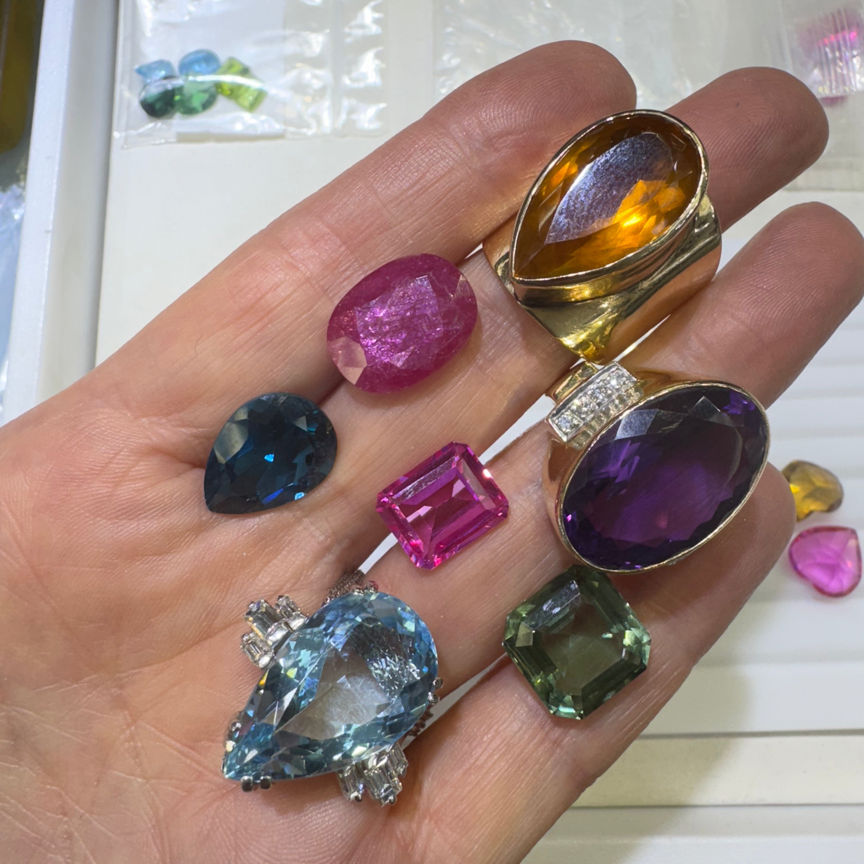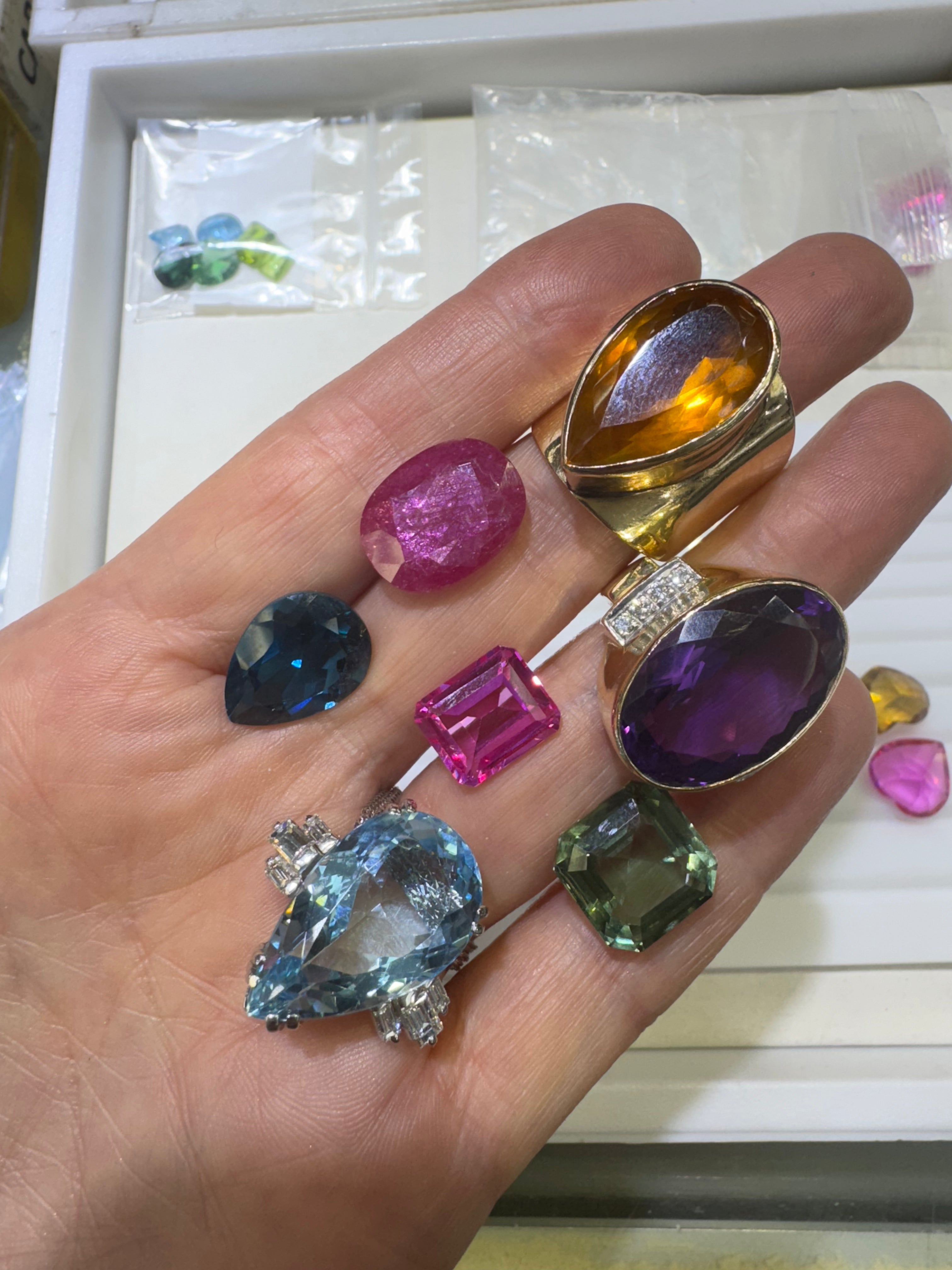 No problem! Jackie will curate gemstone selections based on your preferences during your initial consultation, and you’ll choose from a wide array of vibrant, ethically sourced stones during your styling session(s).