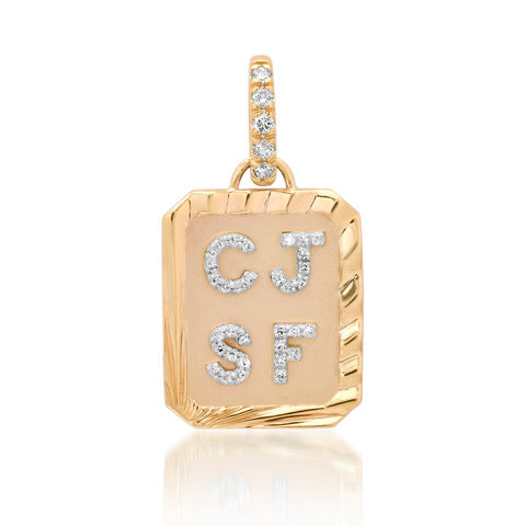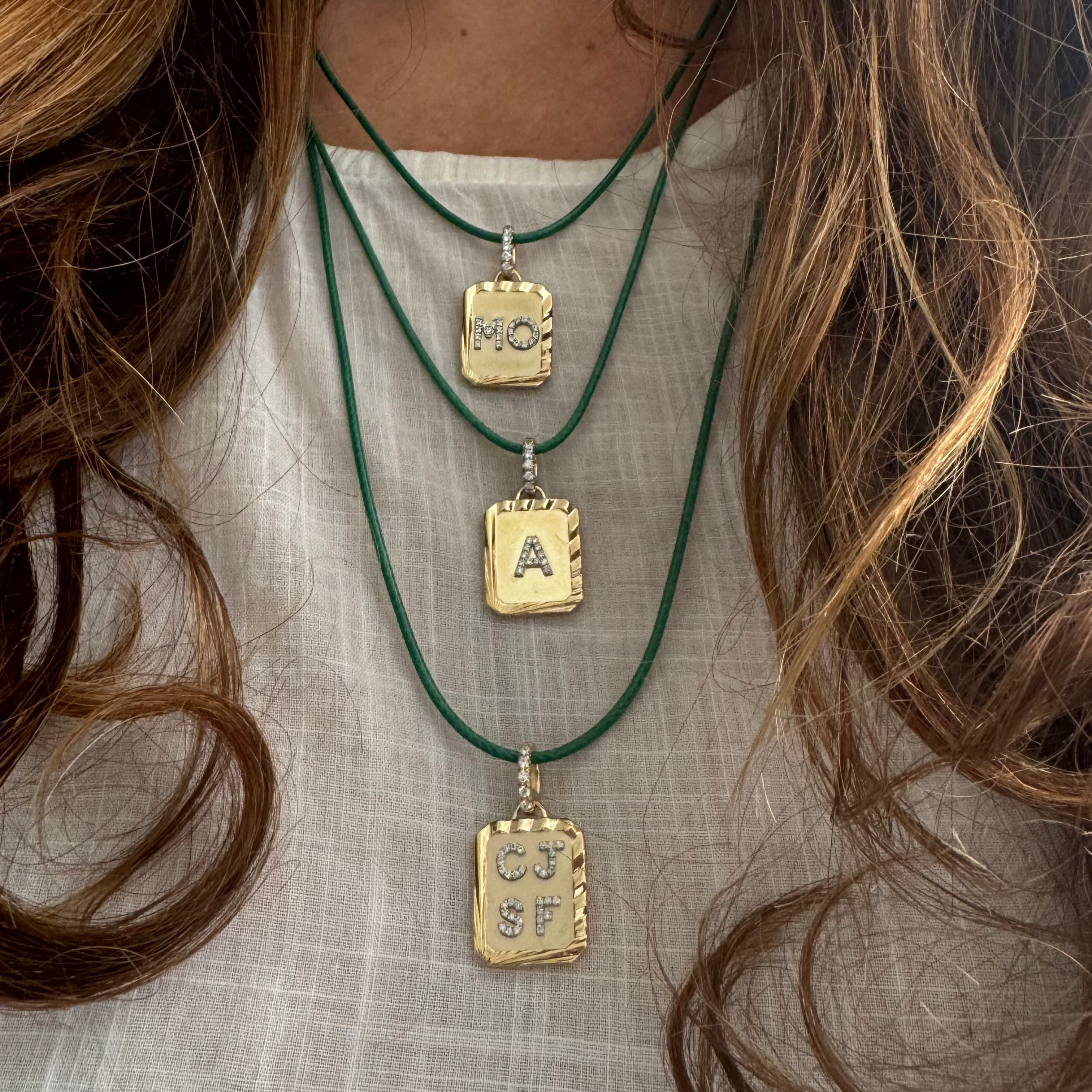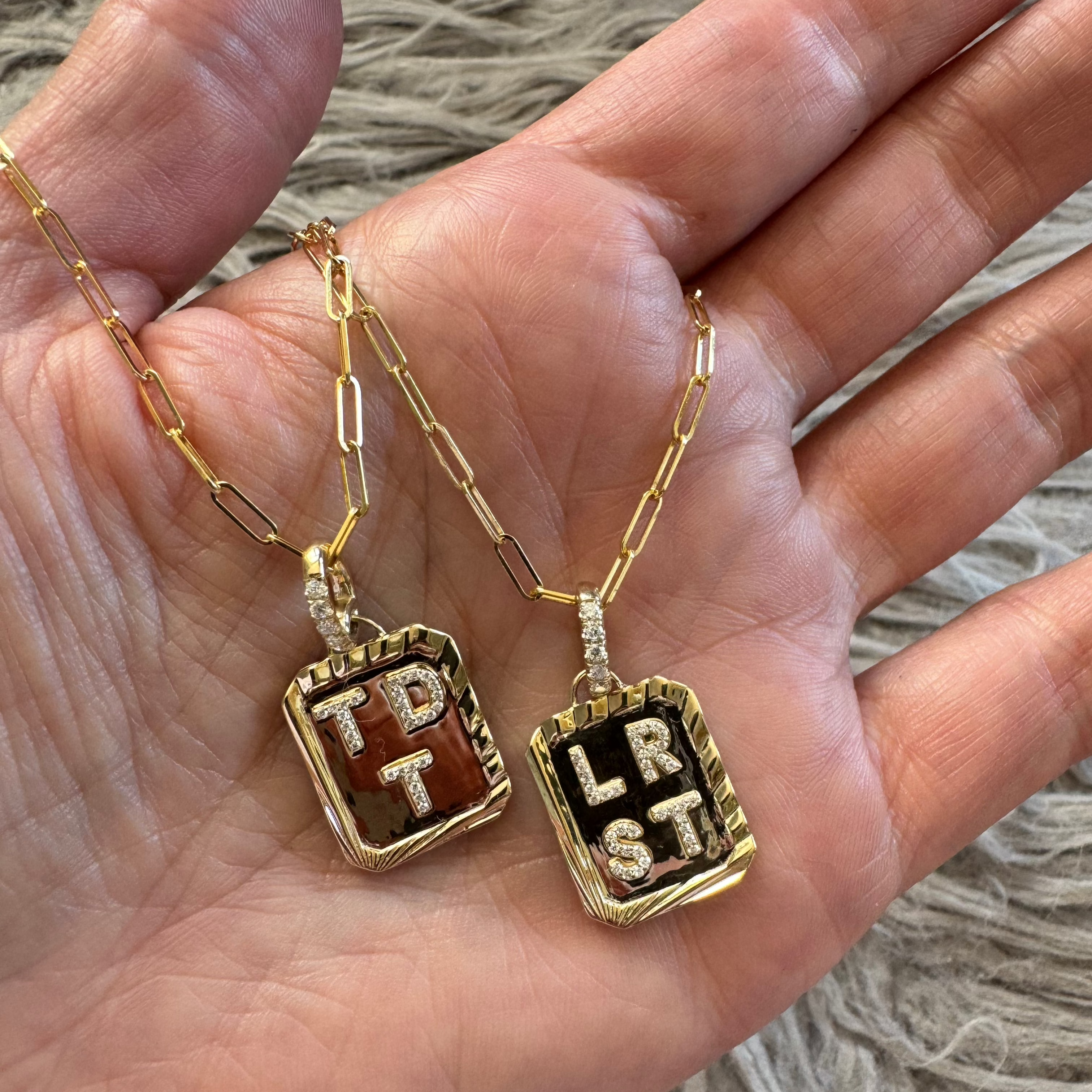 Elevate your style with the Fiona Dog Tag Necklace. This handcrafted piece features a fluted border dog tag charm, customizable with your choice of diamond letters or numbers. The 18" adjustable paperclip chain adds versatility, while the diamond bail and 14k gold bring a luxurious touch. This is the perfect necklace to feature your initials, or the initials of your family and loved ones. Tell your story in a bold and beautiful way!