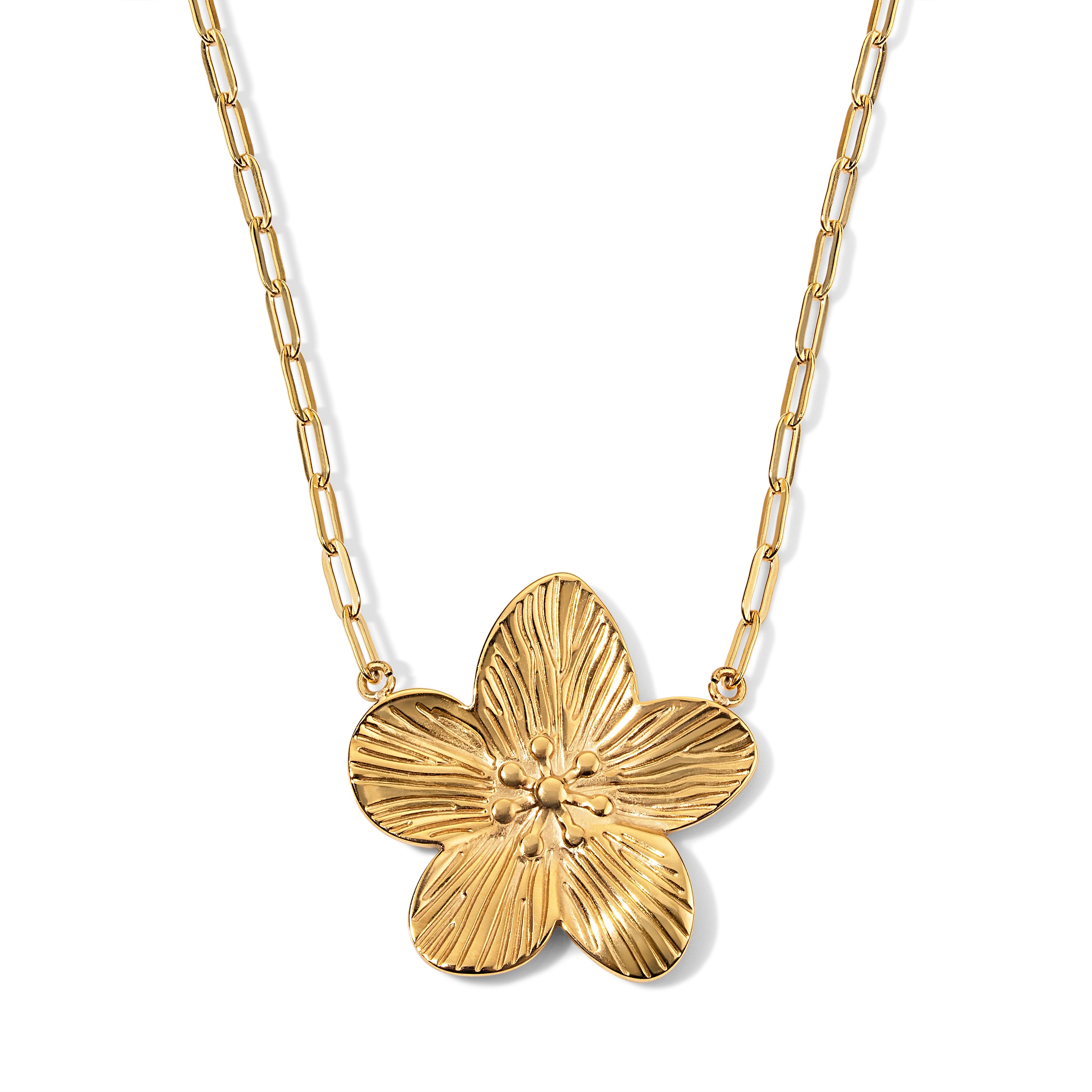 Let your style blossom. Our Fluted Flower Necklace channels nature’s beauty in the form of an elegant flower. Crafted in durable, non-tarnish stainless steel and finished in your choice of silver or yellow gold tone, this beautiful bloom makes a perfect gift for the modern romantic.