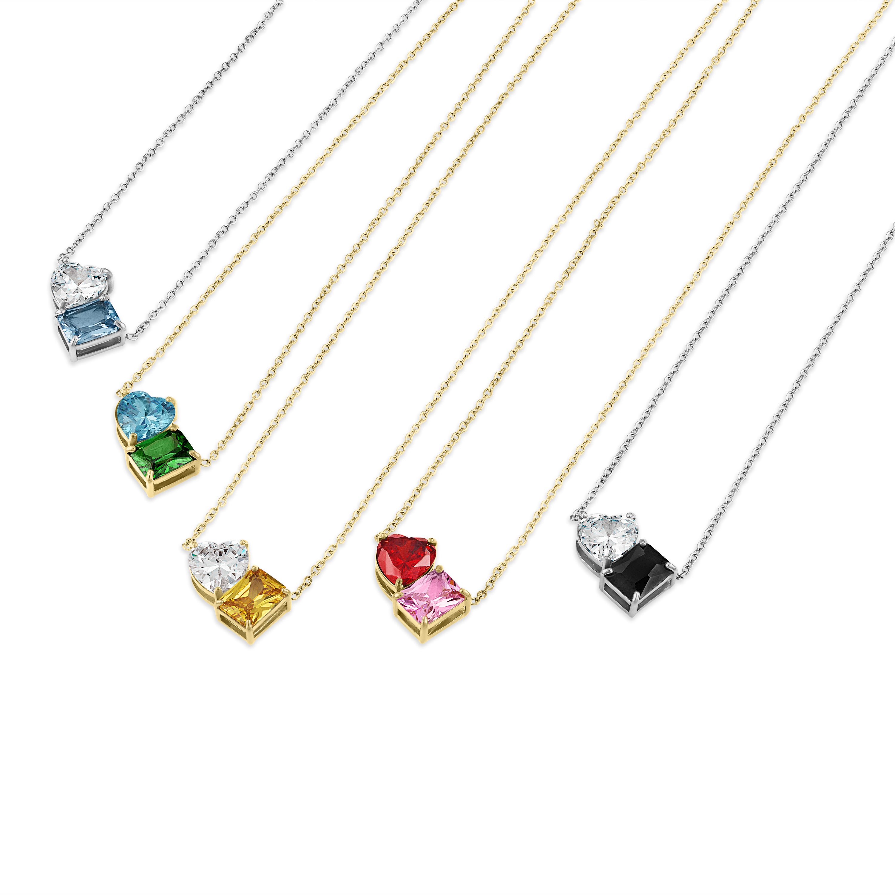 A Playful Twist on Classic Elegance. The Jackie Two Stone Necklace is a delightful piece that combines colorful crystals on a sleek cable chain necklace. Perfect for wearing alone as a statement or layering with other necklaces, it embodies the essence of demi-fine jewelry, offering both quality and affordability.
